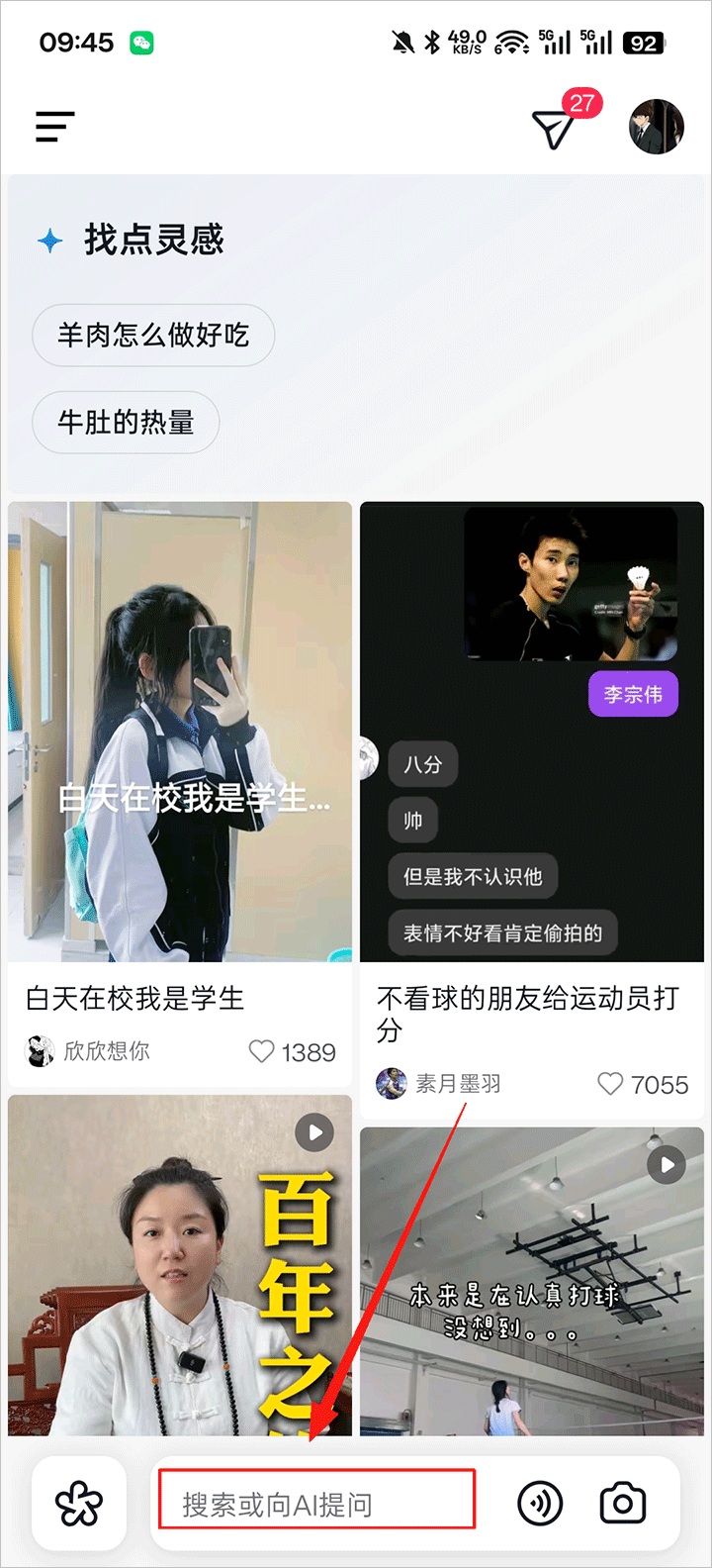 1.打开AI抖音App,点击搜索栏进入搜索界面